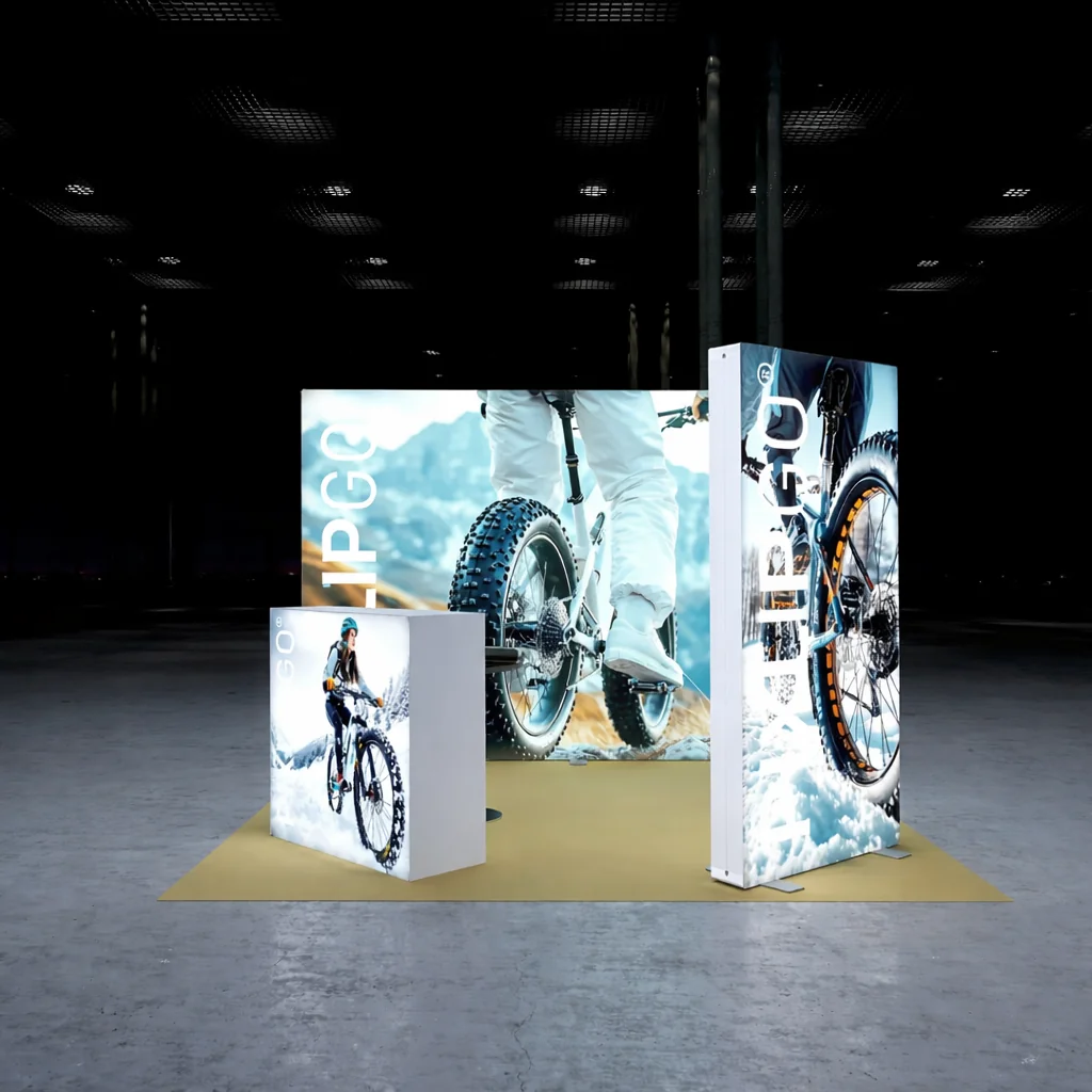 PIXLIP GO S-beursstands <10m² zijn gemaakt voor merken die professioneel willen opvallen op een compact beursoppervlak. Deze kleine beursstands combineren een slimme indeling met helder verlichte PIXLIP GO LIGHTBOX-wanden, zodat je merk direct zichtbaar is — ook op drukke beursvloeren.